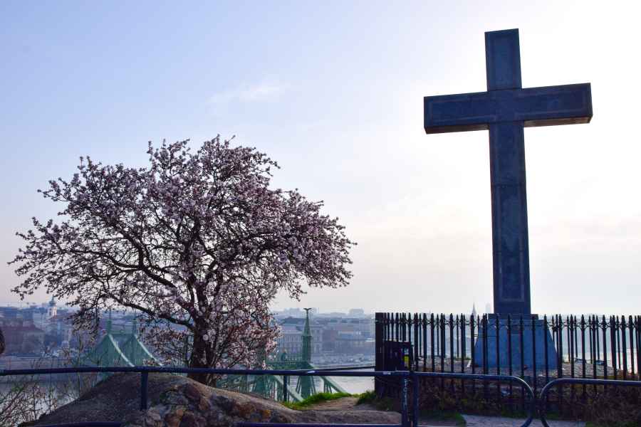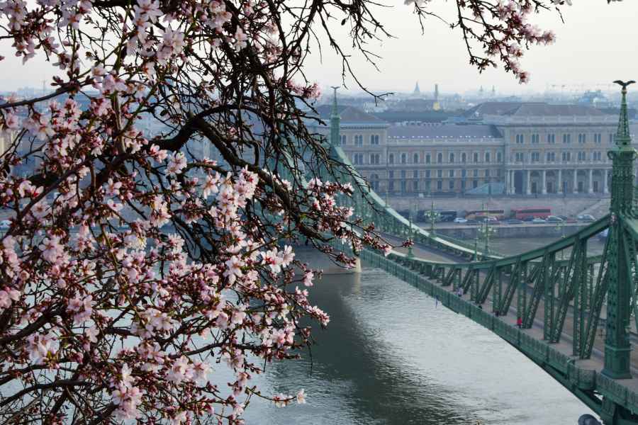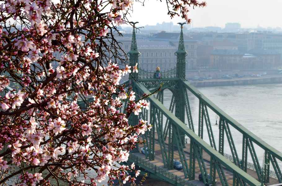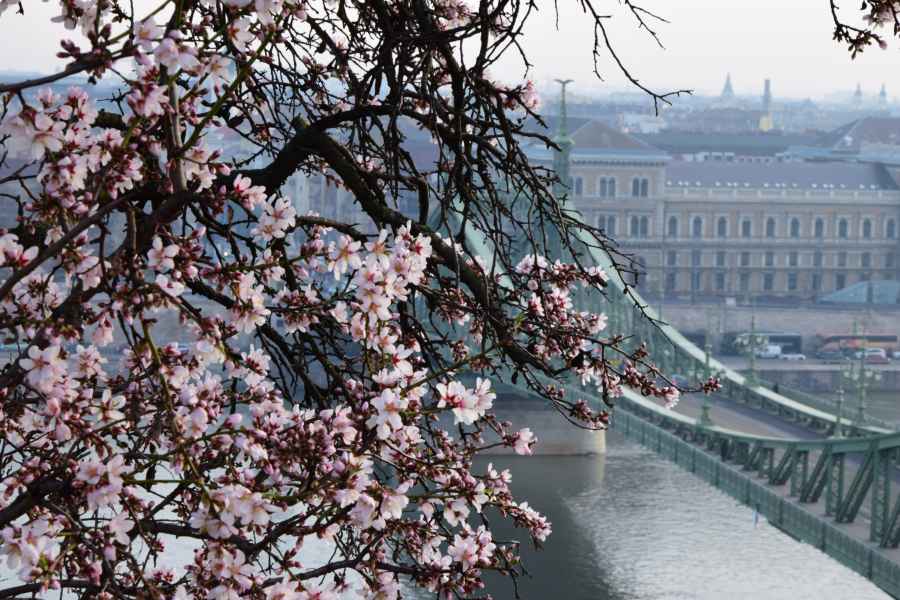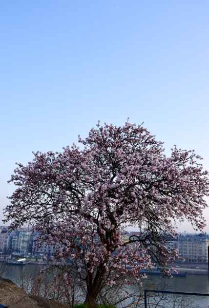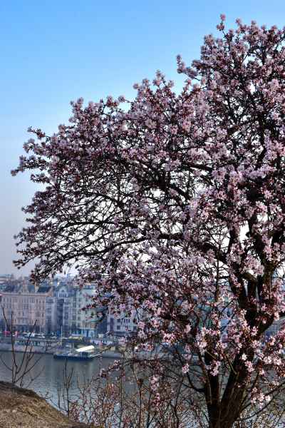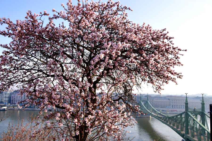 Virágba borult a Gellért-hegy gyönyörű mandulafája.